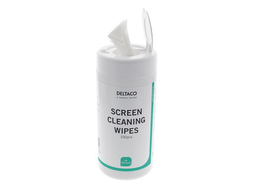 DeltacoDELTACO våtservietter for rengjøring av skjermer. - Inneholder 100 store våtservietter - Alkoholfri - Biologiskt nedbrytbar - Farge: hvit