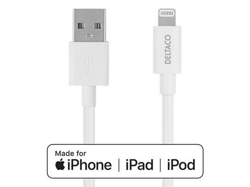 DeltacoDeltaco USB-A til Lightning, Mfi C89, 2m, hvit - Deltaco USB-A til Lightning - Mfi C89 - Lengde: 2m - Farge: hvit.