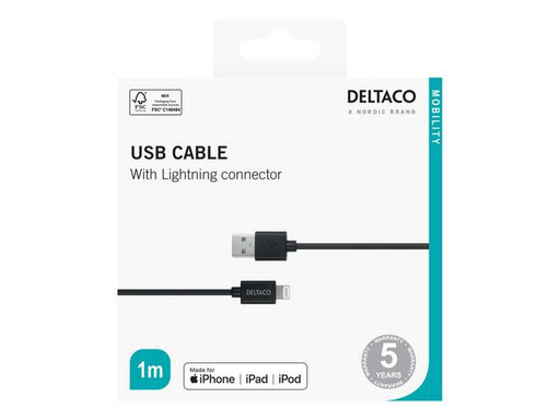 DeltacoDELTACO Lightning kabel, 1m, Apple C189 chipset, MFi, sort USB-kabel med Lightning-tilkobling for å lade og synkronisere din iPod, iPhone, iPad ell...