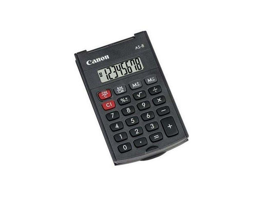 CanonKalkulatorAS-8 er kompakt og stilige håndholdte kalkulatoren med åtte siffer har smart buet design og et solid deksel som kan vippes rundt 360 grad...